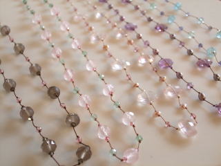 Kyoko Herz サンフランシスコ郊外に在住。 ジュエリーコーディネーターの仕事をしていくうちに天然石に魅せられ、作家活動に入る。 自然の美しい花々にインスピレーションを得て、作品を生み出している。 米国のアートストアでも展開している。 天然石のカットや色の魅力を存分に活かしたデザインです。 ナイロンコードを使用したネックレスは金属にはないニュアンスで、付け心地も軽く、 お洋服とのコーディネートの幅が広がります。 |