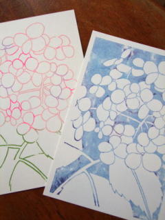 版画で郵便はがき、カードなどを製作しています。
